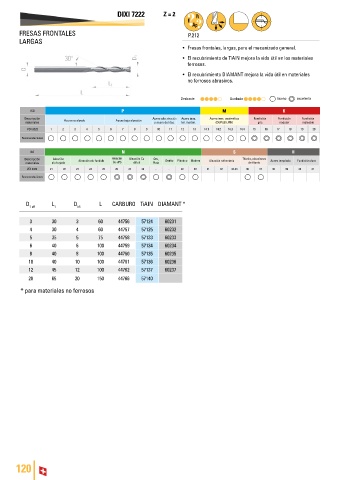 • Fresas frontales, largas, para el mecanizado general.