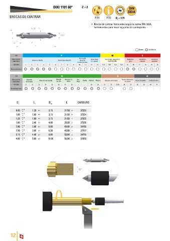 • Brocas de centrar, fabricadas según la norma DIN 333A,
