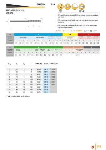 • Fresas frontales, mango cilíndrico, largas, para el mecanizado