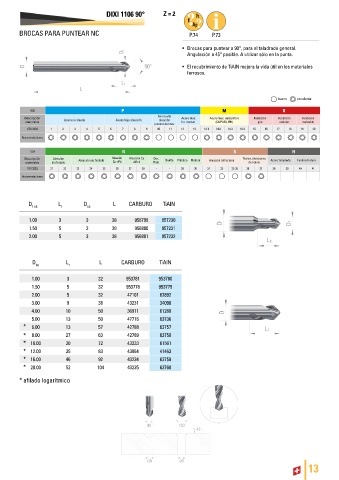 • Brocas para puntear a 90°, para el taladrado general.