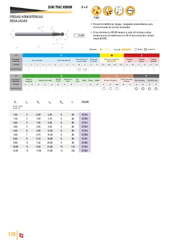 • Fresas hemisféricas, largas, rebajadas desarrolladas para