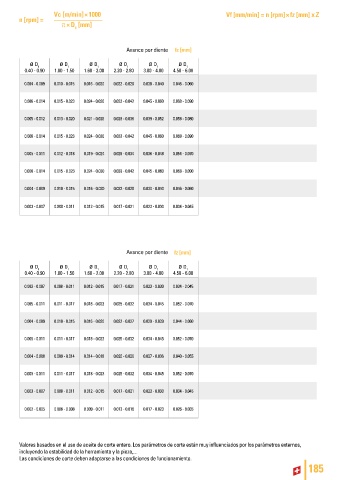 Valores basados en el uso de aceite de corte entero. Los parámetros de corte están muy influenciados por los parámetros externos,