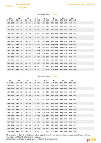 Las condiciones de corte deben adaptarse a las condiciones de funcionamiento. 191