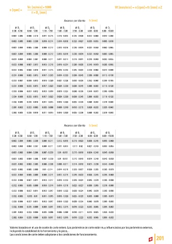 Valores basados en el uso de aceite de corte entero. Los parámetros de corte están muy influenciados por los parámetros externos,