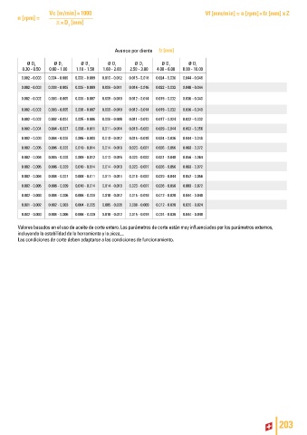 Valores basados en el uso de aceite de corte entero. Los parámetros de corte están muy influenciados por los parámetros externos,