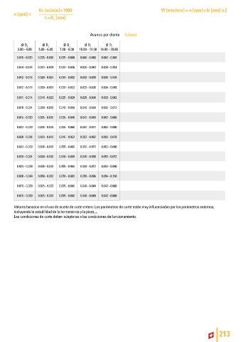 Valores basados en el uso de aceite de corte entero. Los parámetros de corte están muy influenciados por los parámetros externos,