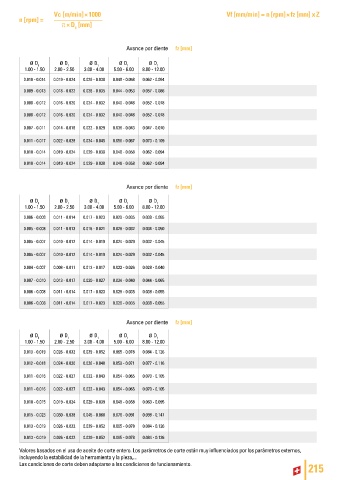 Valores basados en el uso de aceite de corte entero. Los parámetros de corte están muy influenciados por los parámetros externos,