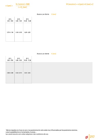 Valores basados en el uso en seco. Los parámetros de corte están muy influenciados por los parámetros externos,