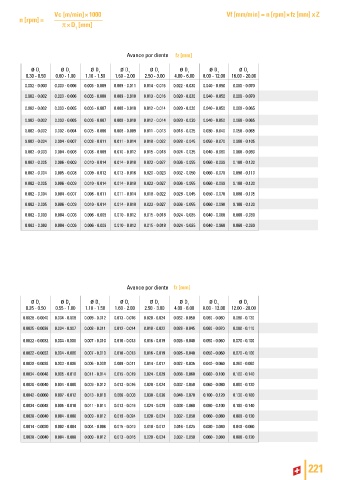 Vc [m/min] × 1000 Vf [mm/min] = n [rpm] × fz [mm] x Z