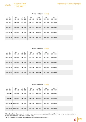 Valores basados en el uso de aceite de corte entero. Los parámetros de corte están muy influenciados por los parámetros externos,