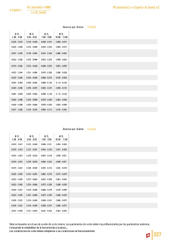 Valores basados en el uso de aceite de corte entero. Los parámetros de corte están muy influenciados por los parámetros externos,