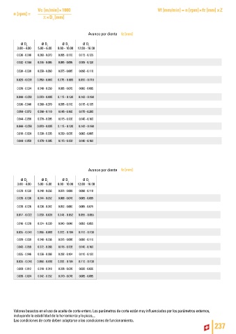 Valores basados en el uso de aceite de corte entero. Los parámetros de corte están muy influenciados por los parámetros externos,