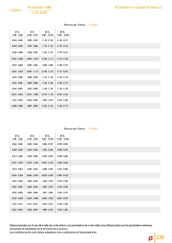 Valores basados en el uso de aceite de corte entero. Los parámetros de corte están muy influenciados por los parámetros externos,