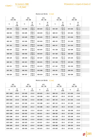 0.0012 - 0.0024 < 0.25 × Ø 0.002 - 0.004 < 0.50 × Ø 0.003 - 0.008 < 1.00 × Ø 0.007 - 0.015 < 1.00 × Ø 0.012 - 0.024 < 1.00 × Ø