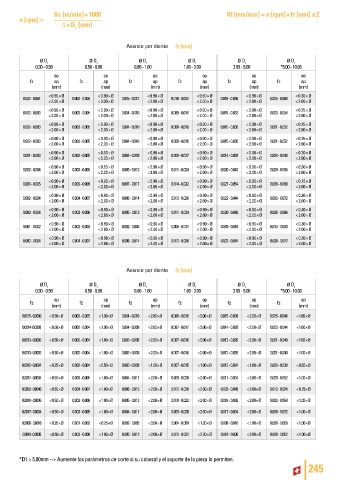 Avance por diente fz [mm]