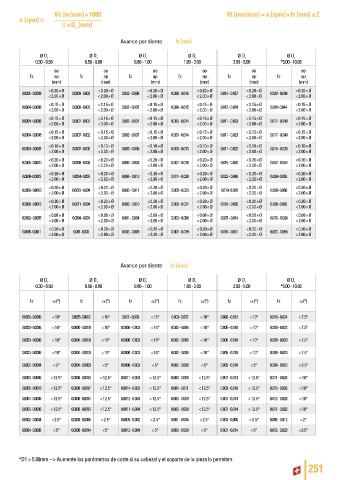 Avance por diente fz [mm]