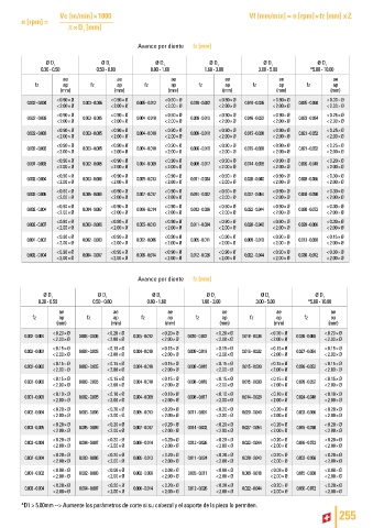 0.002 - 0.004 < 0.20 × Ø 0.004 - 0.007 < 0.20 × Ø 0.006 - 0.014 < 0.20 × Ø 0.012 - 0.026 < 0.20 × Ø 0.022 - 0.044 < 0.20 × Ø 0.036 - 0.072 < 0.20 × Ø