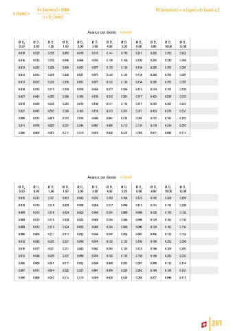 Avance por diente fz [mm]