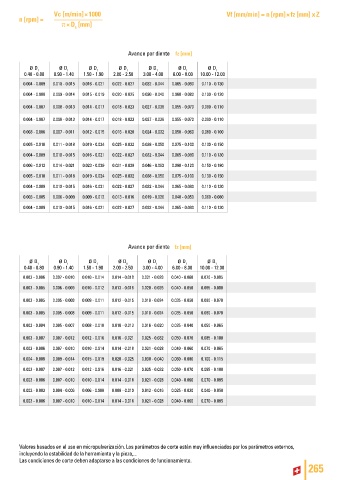 Valores basados en el uso en micropulverización. Los parámetros de corte están muy influenciados por los parámetros externos,