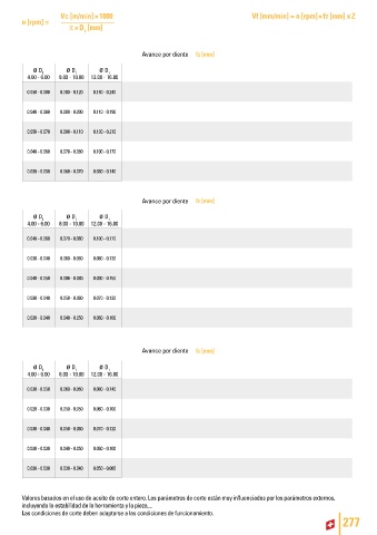 Valores basados en el uso de aceite de corte entero. Los parámetros de corte están muy influenciados por los parámetros externos,