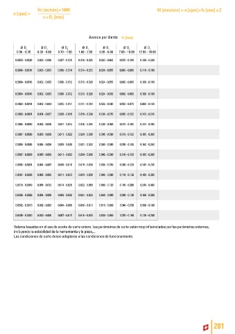 Valores basados en el uso de aceite de corte entero. Los parámetros de corte están muy influenciados por los parámetros externos,