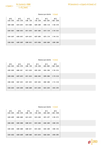 Vc [m/min] × 1000 Vf [mm/min] = n [rpm] × fz [mm] x Z