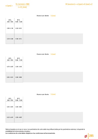 Avance por diente fz [mm]