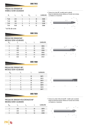 FRESAS DE GRABAR HELICOIDALES 60° • Fresas de grabar helicoidales 60°, modelo semi-acabado.