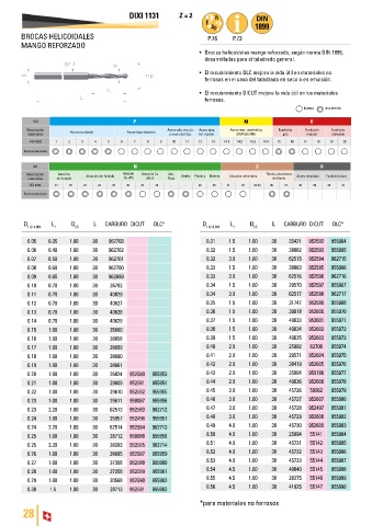 • Brocas helicoidales mango reforzado, según norma DIN 1899,