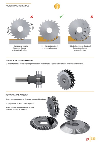 1 - 2 dientes en el material 3 - 4 dientes de material Más de 4 dientes en el material