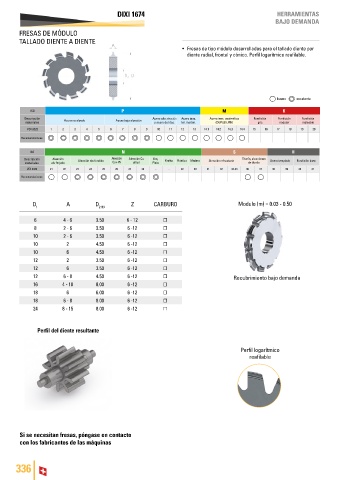 • Fresas de tipo módulo desarrolladas para el tallado diente por