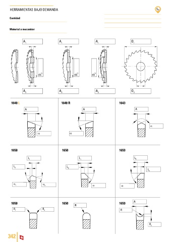 HERRAMIENTAS BAJO DEMANDA Cantidad Material a mecanizar A A A D 1 1 1 1 D 3 D 3 D 3 A A A D 2 2 2 2 1640 L 1640 R 1643 A A A α α α 1650 1650 1650 L 1 L 1 L 1 L 2 L 2 L 2 α 1 α 2 α α 1650 1650 1650 A R R R 1 2 R R 2 342