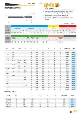 • Fresas de roscar UN desarrolladas para el mecanizado en
