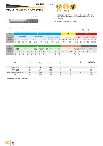 • Fresas de roscar BSP de dentado recto desarrolladas para