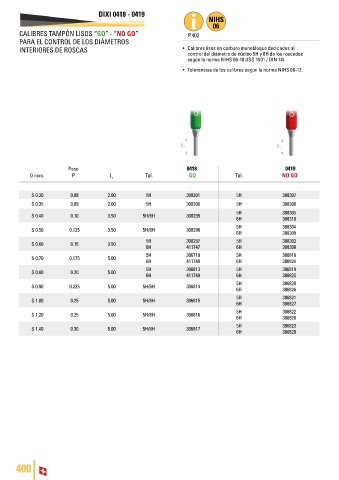 CALIBRES TAMPÓN LISOS “GO” - “NO GO” P.402