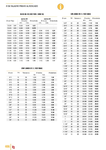 Ø nom TPI Tolerancia Ø núcleo Ø taladrado 11/16’’ 16 2B 15.744 16.102 15.90