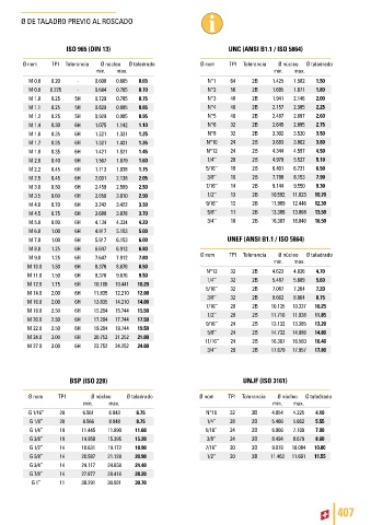 Ø nom TPI Tolerancia Ø núcleo Ø taladrado Ø nom TPI Tolerancia Ø núcleo Ø taladrado