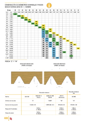 COMBINACIÓN DE DIÁMETROS NOMINALES Y PASOS