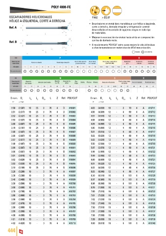 • Escariadores en metal duro monobloque con hélice a izquierda,