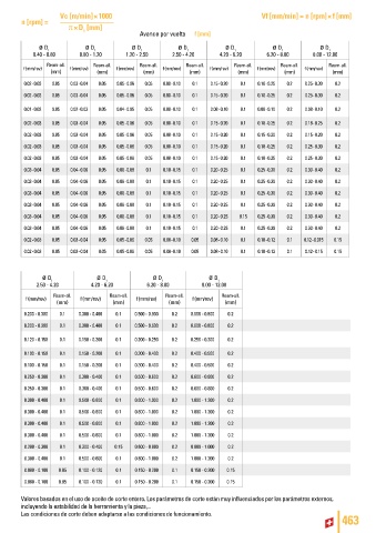 f (mm/rev) f (mm/rev) f (mm/rev) f (mm/rev)