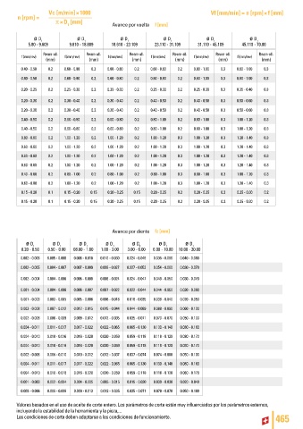 Las condiciones de corte deben adaptarse a las condiciones de funcionamiento. 465
