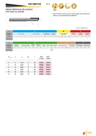 • Fresas PCD de 2 tamaños para superacabado desarrollado para
