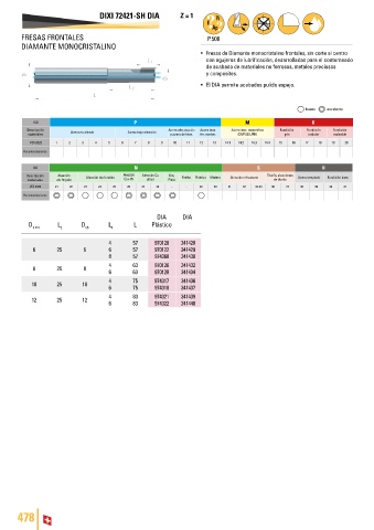 • Fresas de Diamante monocristalino frontales, sin corte al centro