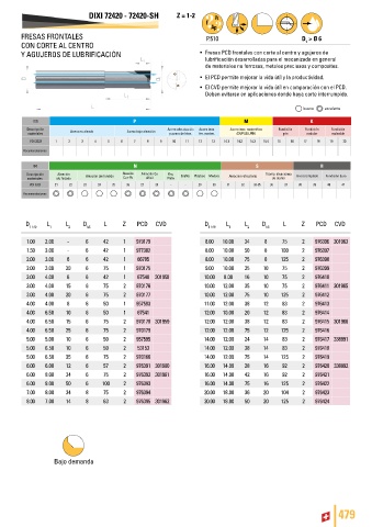 Y AGUJEROS DE LUBRIFICACIÓN • Fresas PCD frontales con corte al centro y agujeros de