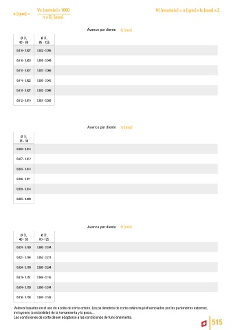 Valores basados en el uso de aceite de corte entero. Los parámetros de corte están muy influenciados por los parámetros externos,