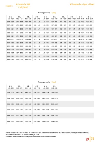 Valores basados en el uso de aceite de corte entero. Los parámetros de corte están muy influenciados por los parámetros externos,