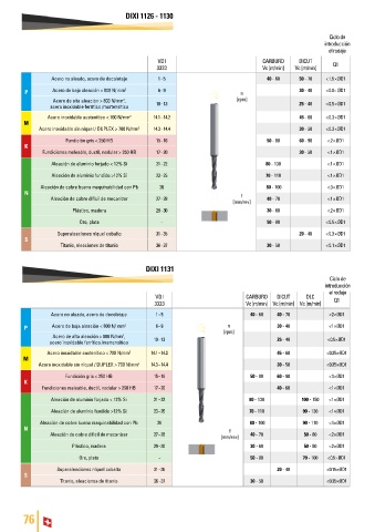 Aleación de cobre difícil de mecanizar 27 - 28 [mm/rev] 40 - 70 50 - 80 < 2 × ØD1